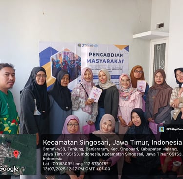Malang, Agustus 2025 – Tim dosen dan mahasiswa Program Studi Keperawatan Fakultas Kedokteran Universitas Negeri Malang (FK UM) kembali berperan aktif dalam peningkatan literasi kesehatan masyarakat melalui kegiatan pengabdian masyarakat yang berfokus pada pemberdayaan ibu PKK dalam pencegahan masalah kesehatan reproduksi. Kegiatan yang diketuai oleh Qory Tifani Rahmatika, S.Kep., Ns., M.Kep., bersama Achmad Masfi, S.Kep., Ns., M.Kep., dan Laras Putri Gamagitta, S.ST., M.Keb., ini dilaksanakan di Banjararum, Kecamatan Singosari, Kabupaten Malang. Sebanyak 26 anggota PKK berpartisipasi aktif dalam kegiatan yang memadukan edukasi interaktif, skrining kesehatan, dan pelatihan modifikasi gaya hidup.