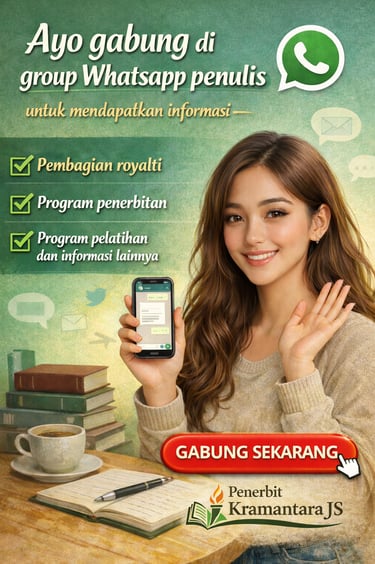 Dengan bergabung dalam grup WhatsApp Penulis Penerbit Kramantara JS, penulis akan menjadi bagian dari komunitas yang saling mendukung, berbagi informasi, dan tumbuh bersama dalam dunia kepenulisan dan penerbitan yang profesional dan berkelanjutan. Klik gambar di atas ini untuk bergabung di group Whatsapp Penulis. Mari bergabung bersama Kami.